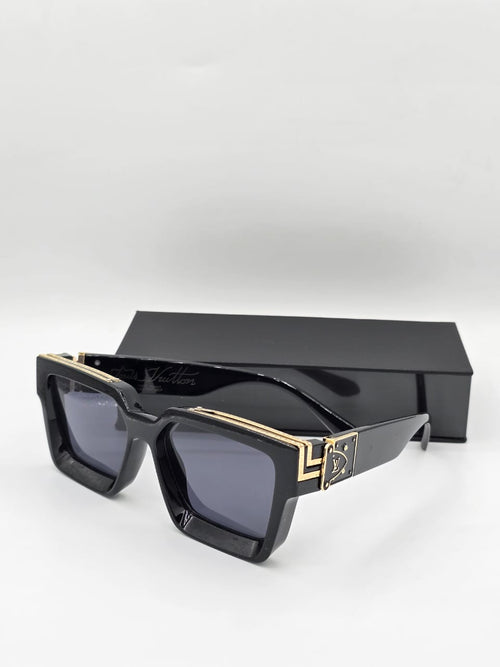 Louis Vuitton LV Millionaire Style Square Sunglasses – Black/Gold Oversized Shades Unisex Luxury Gifts Pre-owned Like new
